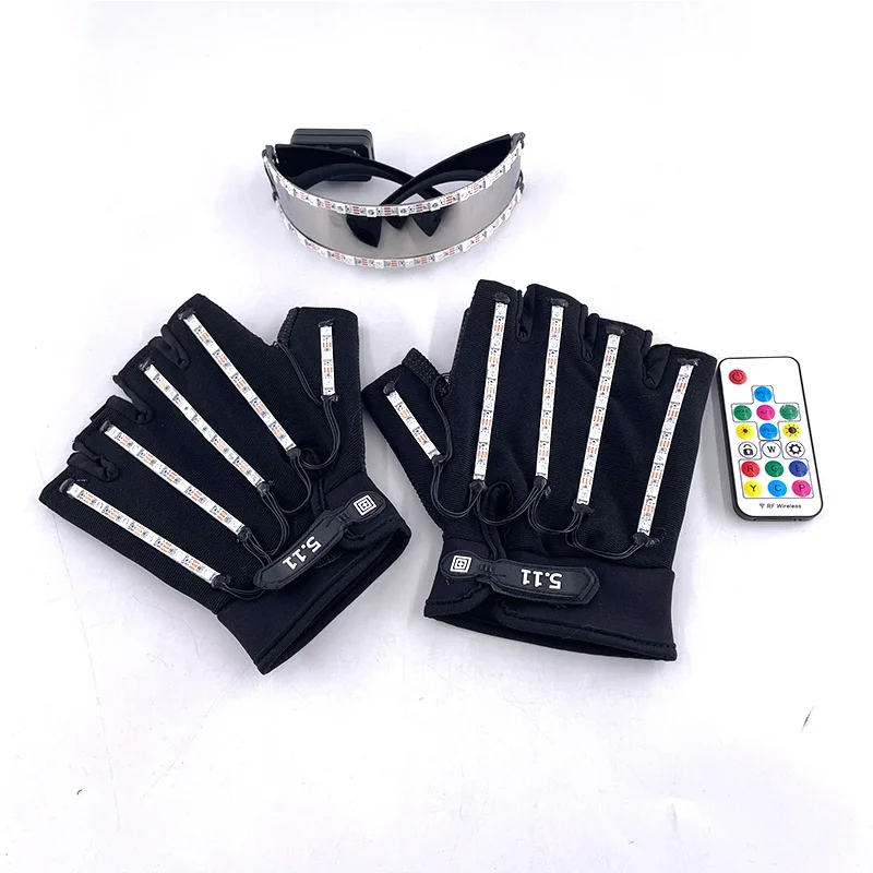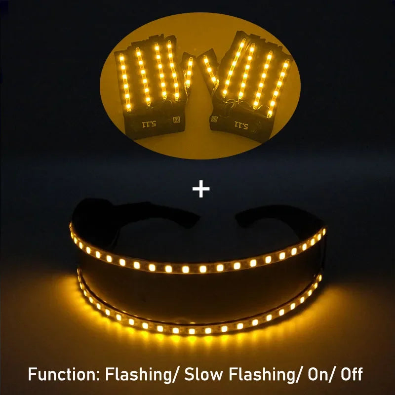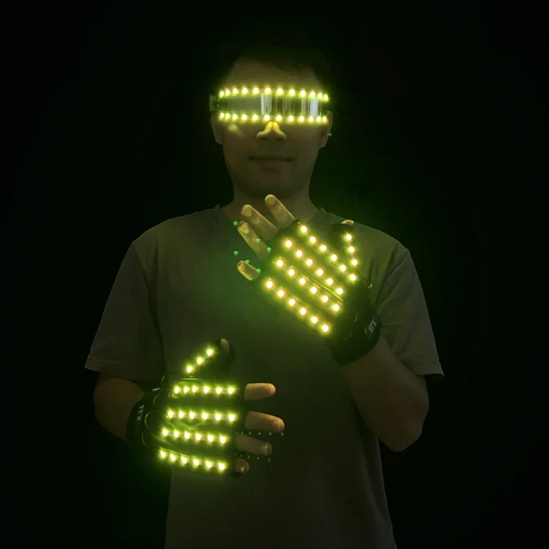 1Set självlysande glasögon Fjärrkontroll LED-glasögon med handskar
