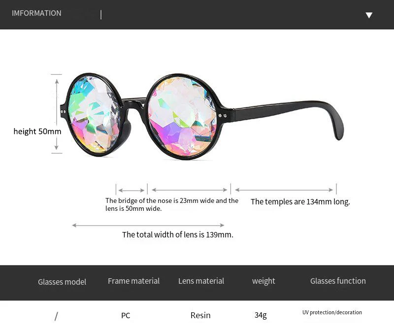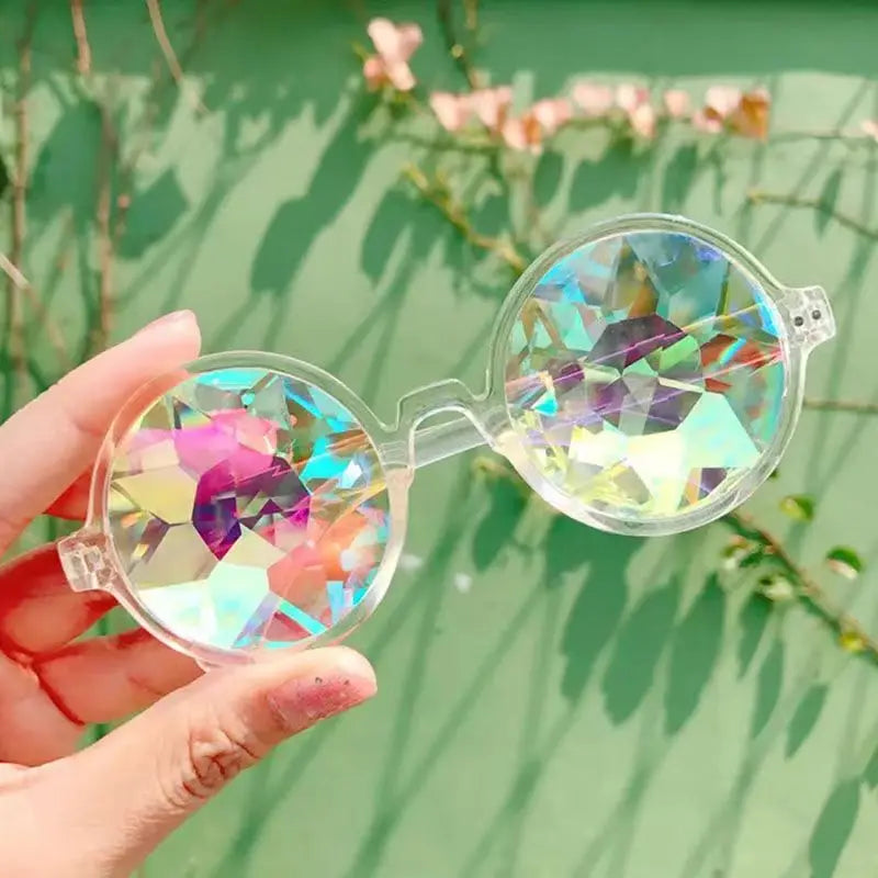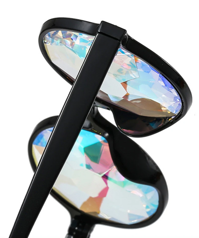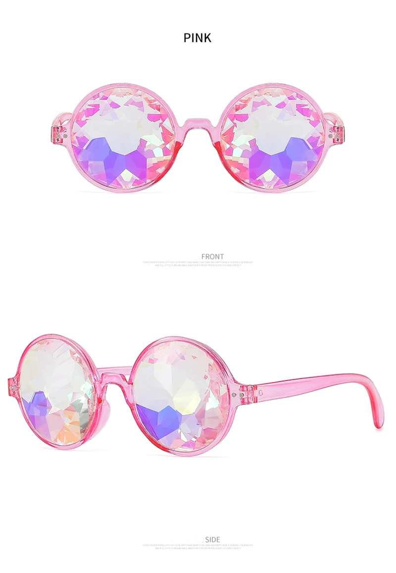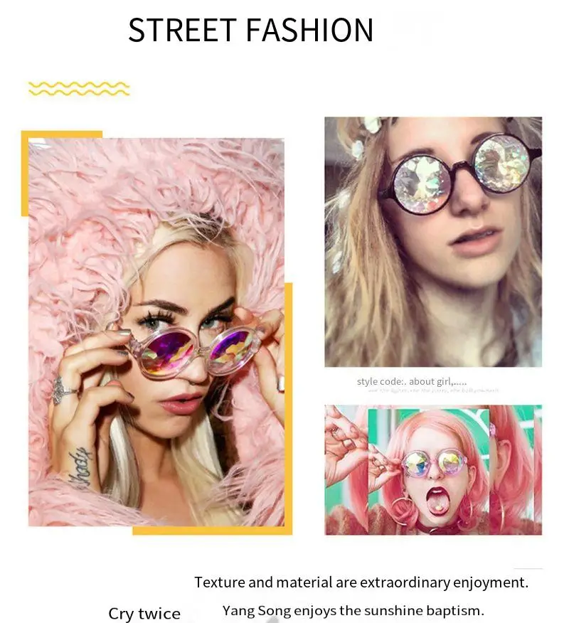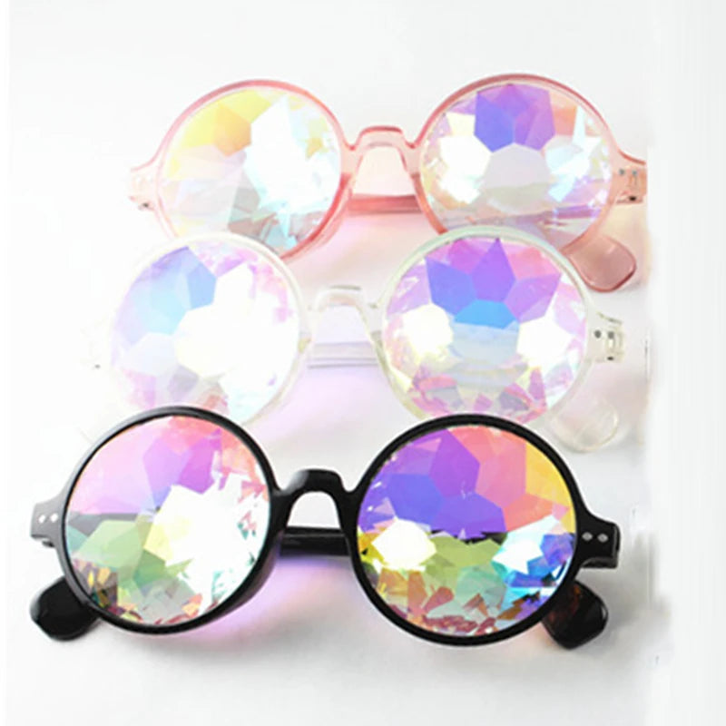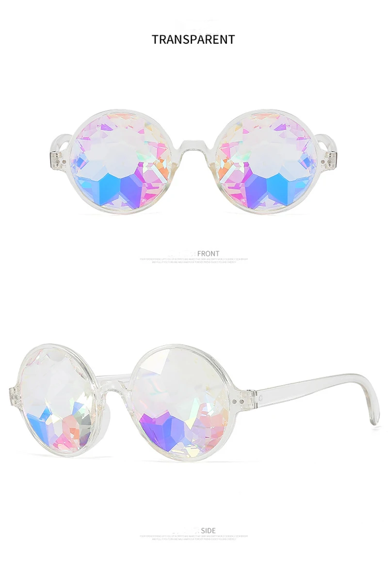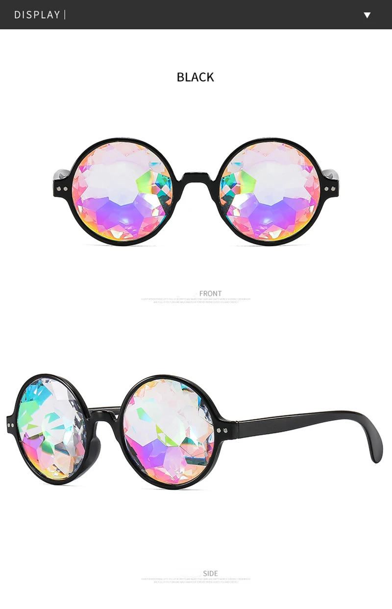 Dam Retro Rave Festival Runda Solglasögon Kalejdoskop Mosaik Prisma Solglasögon Party Cosplay