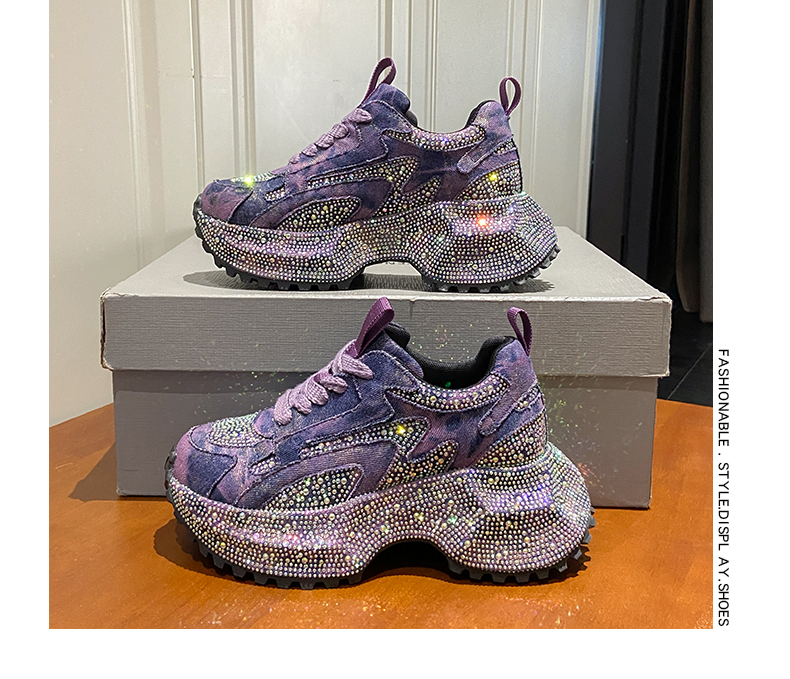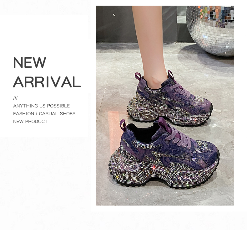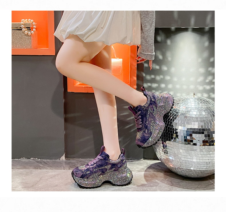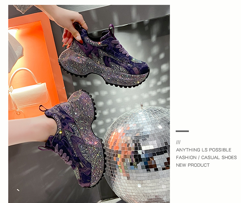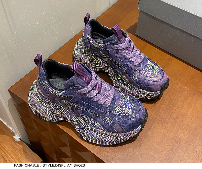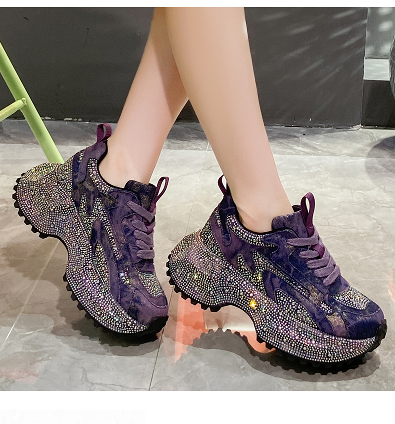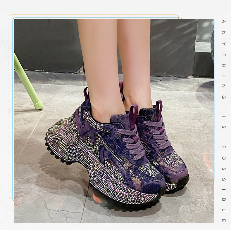 Glitter Diamond Lila Platå Sneakers Dam Lyxiga Mocka Casual Löparskor