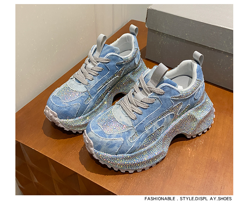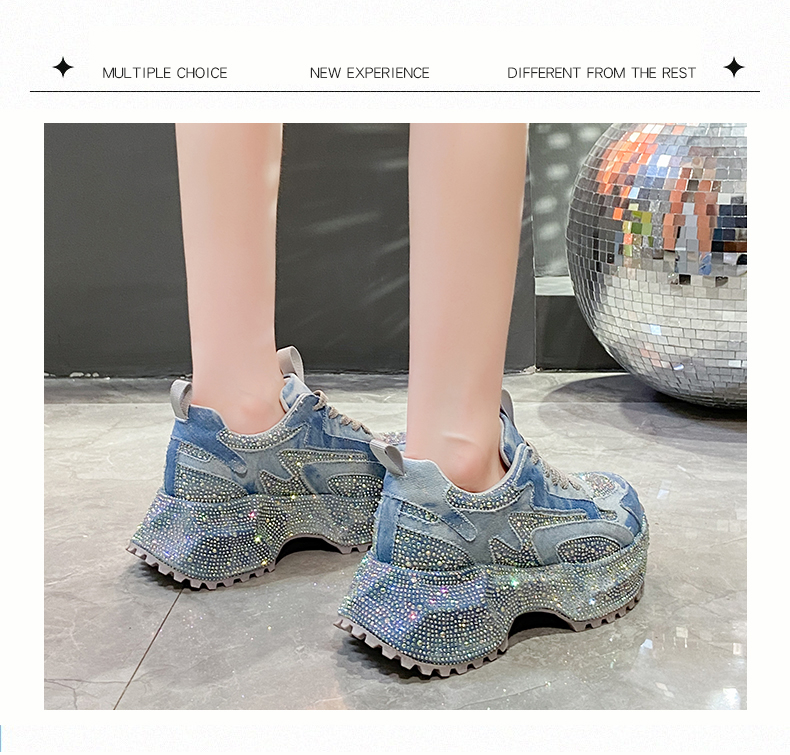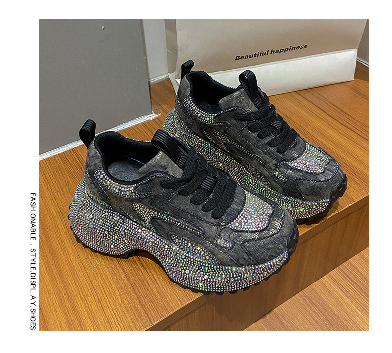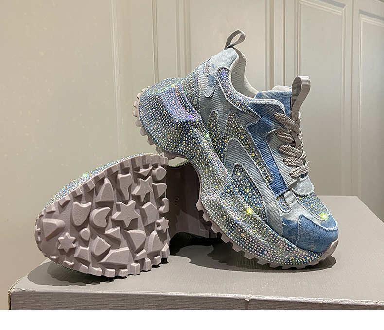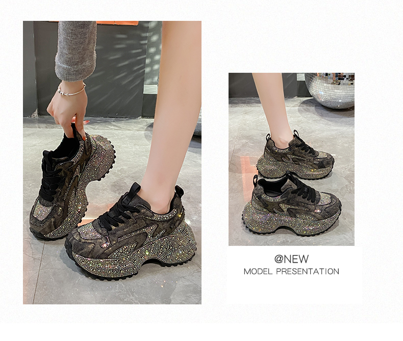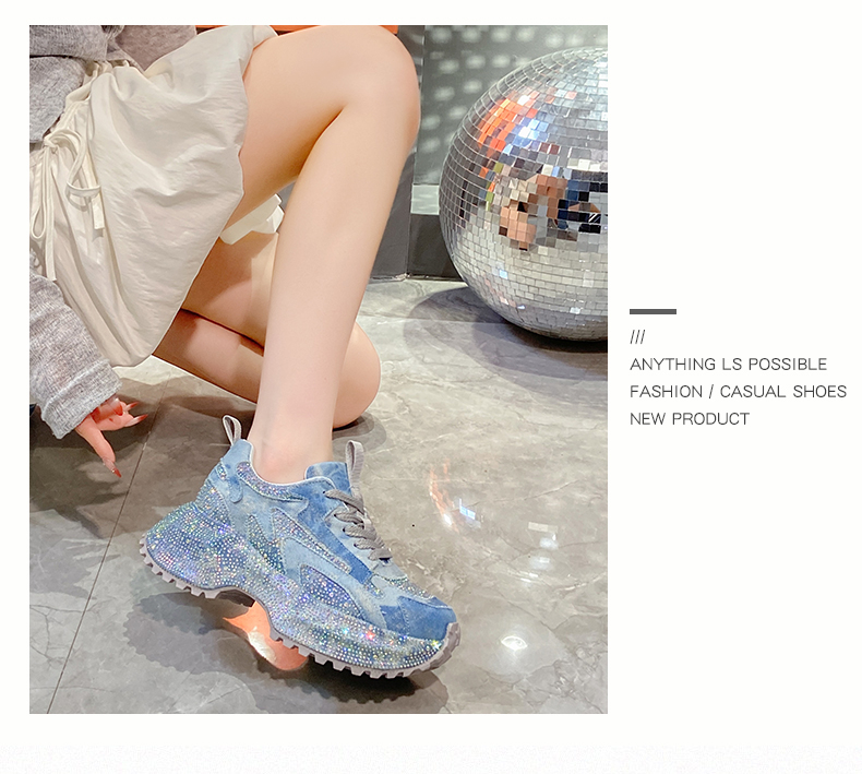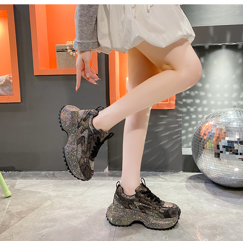 Glitter Diamond Lila Platå Sneakers Dam Lyxiga Mocka Casual Löparskor