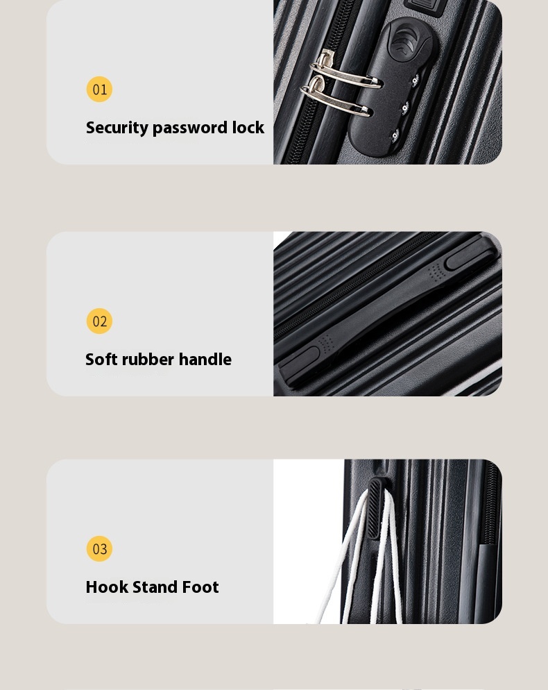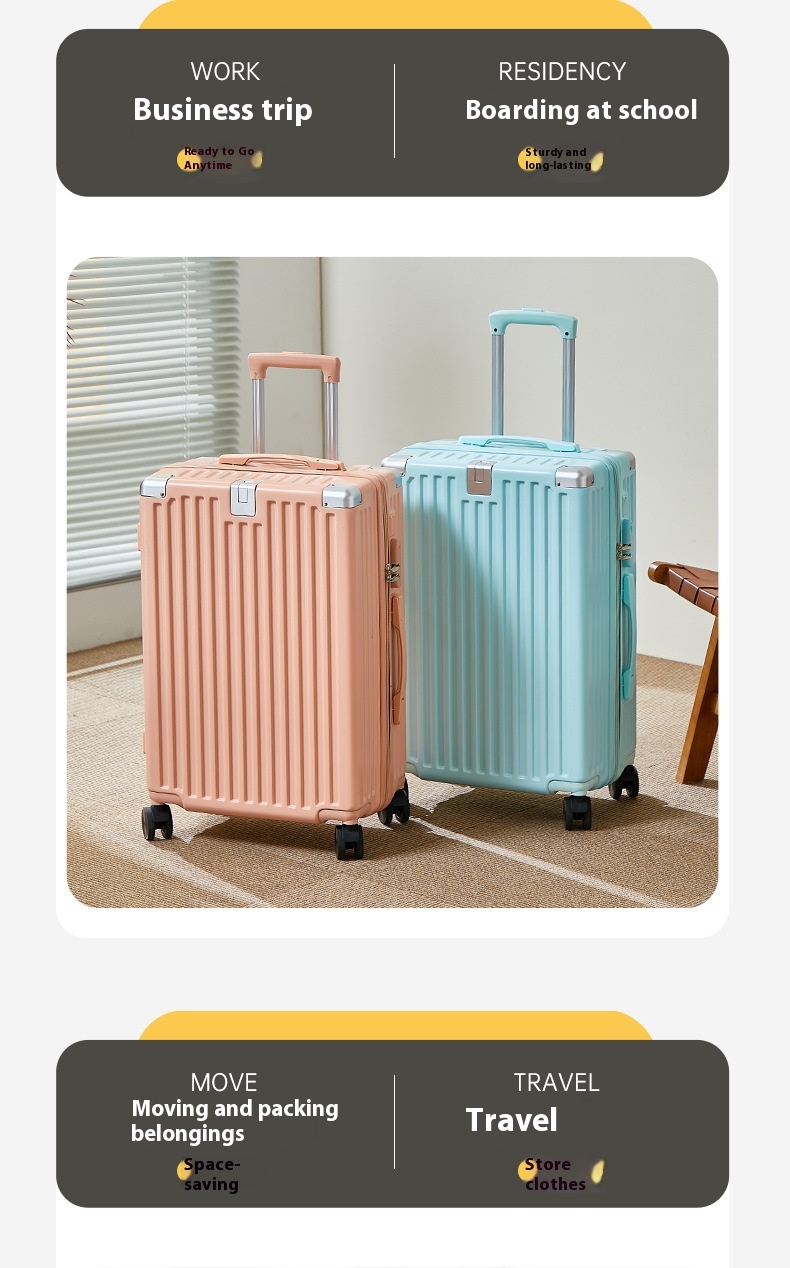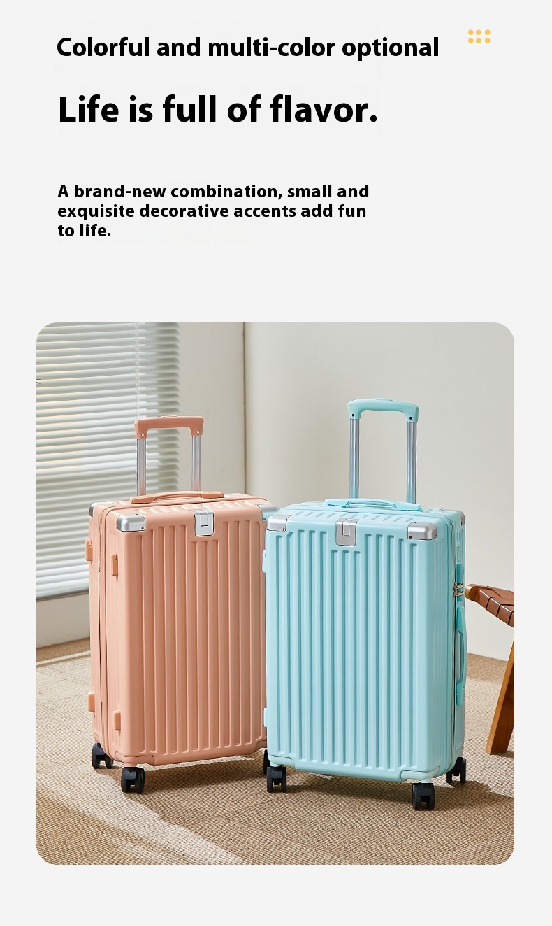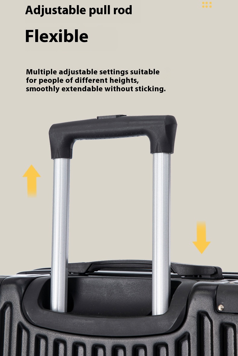 Produktinformation: Mönster: ränder Tillämpligt scenario: resväska Färg: vit trolleyväska, svart trolleyväska, rosa trolleyväska, himmelsblå trolleyväska, mörkgrå trolleyväska, svart/vit/rosa/blå Hjultyp: Universalhjul Material: ABS PC-material Storlek: 20 tum, 24 tum, 26 tum Stil: fritidsresor