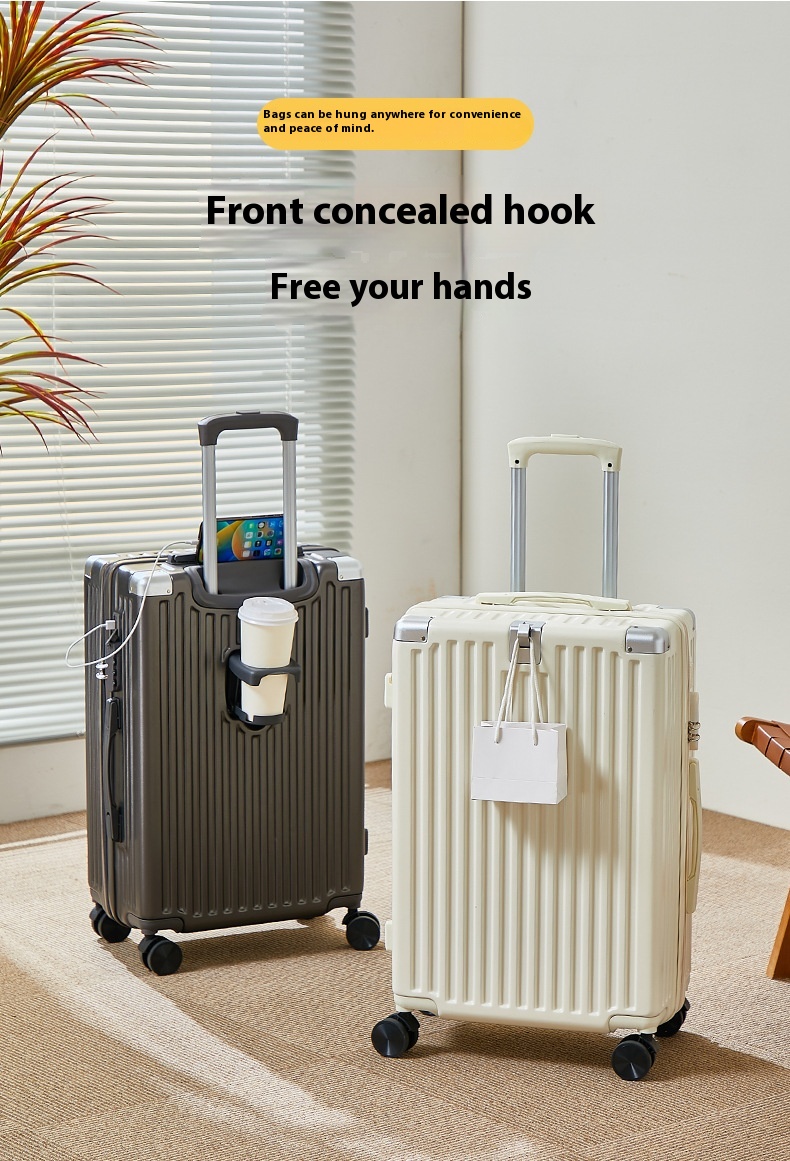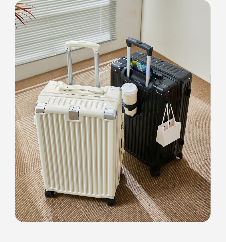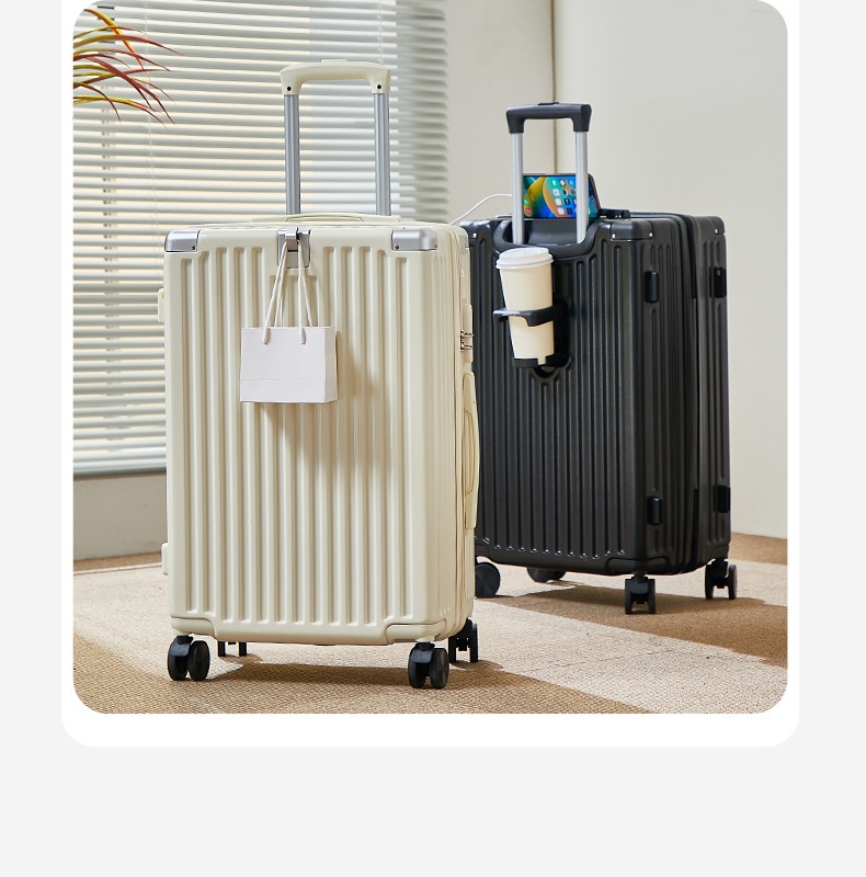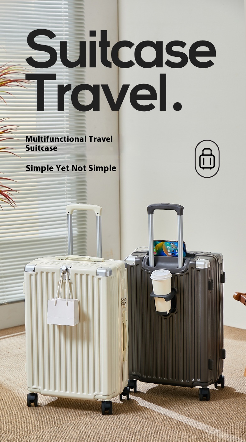 Produktinformation: Mönster: ränder Tillämpligt scenario: resväska Färg: vit trolleyväska, svart trolleyväska, rosa trolleyväska, himmelsblå trolleyväska, mörkgrå trolleyväska, svart/vit/rosa/blå Hjultyp: Universalhjul Material: ABS PC-material Storlek: 20 tum, 24 tum, 26 tum Stil: fritidsresor