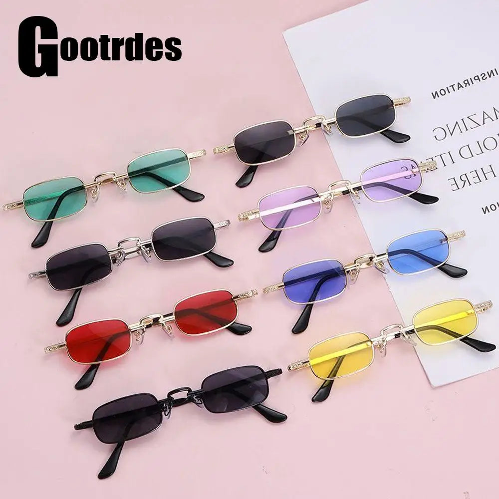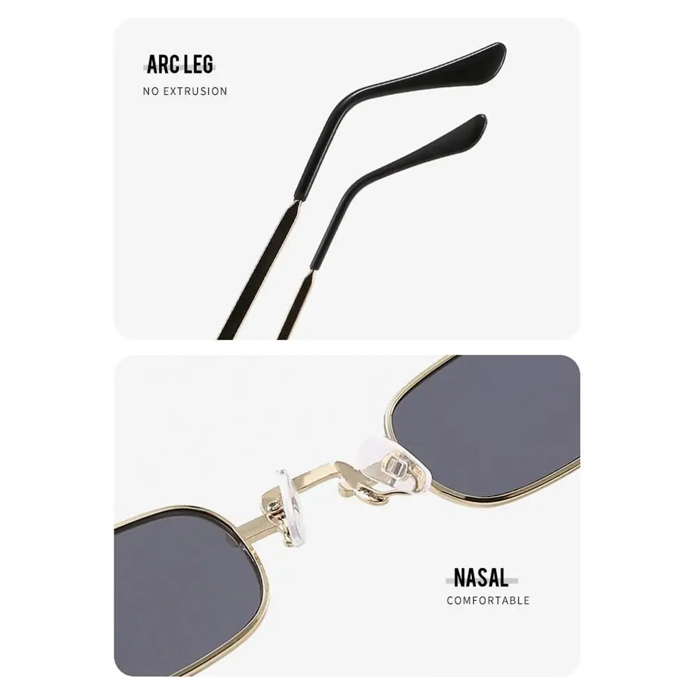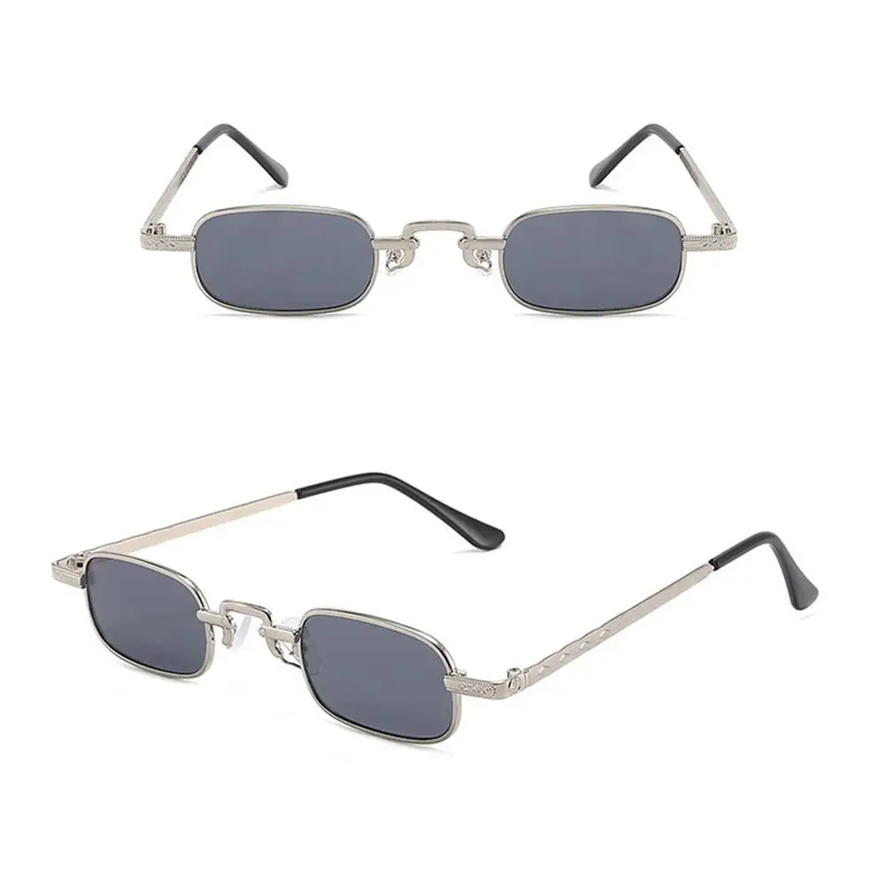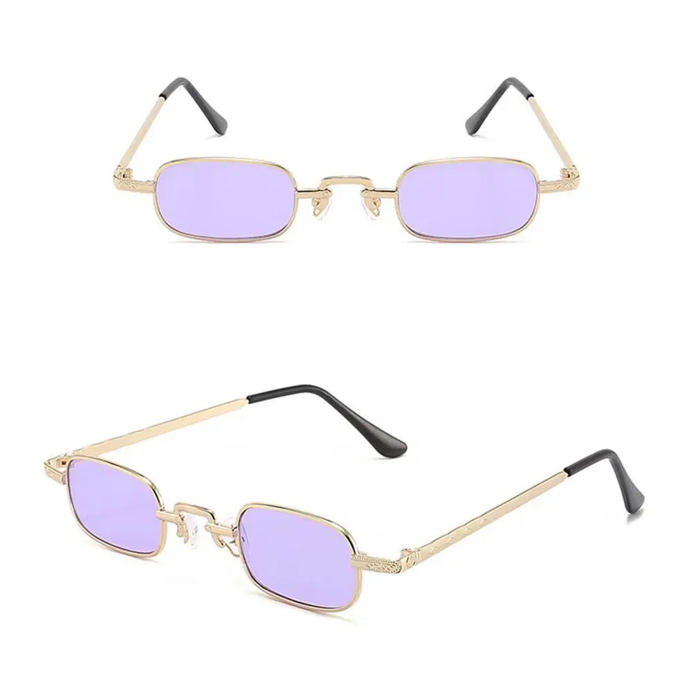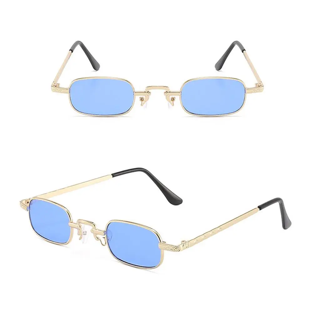 Små rektangulära solglasögon för kvinnor män mode retro metallram solglasögon